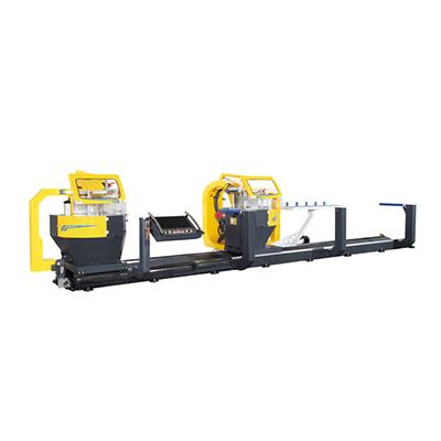 该机采用双头工作台面自动旋转±0º-67.5º定角度,双头锯片自动倾斜0º-45º,加工长度自动定位多功能机械,5轴采用伺服马达控制精度,X轴移动选用线轨加强定位精度、加工精度高并有着其他结构同类机型无法比拟的优势。